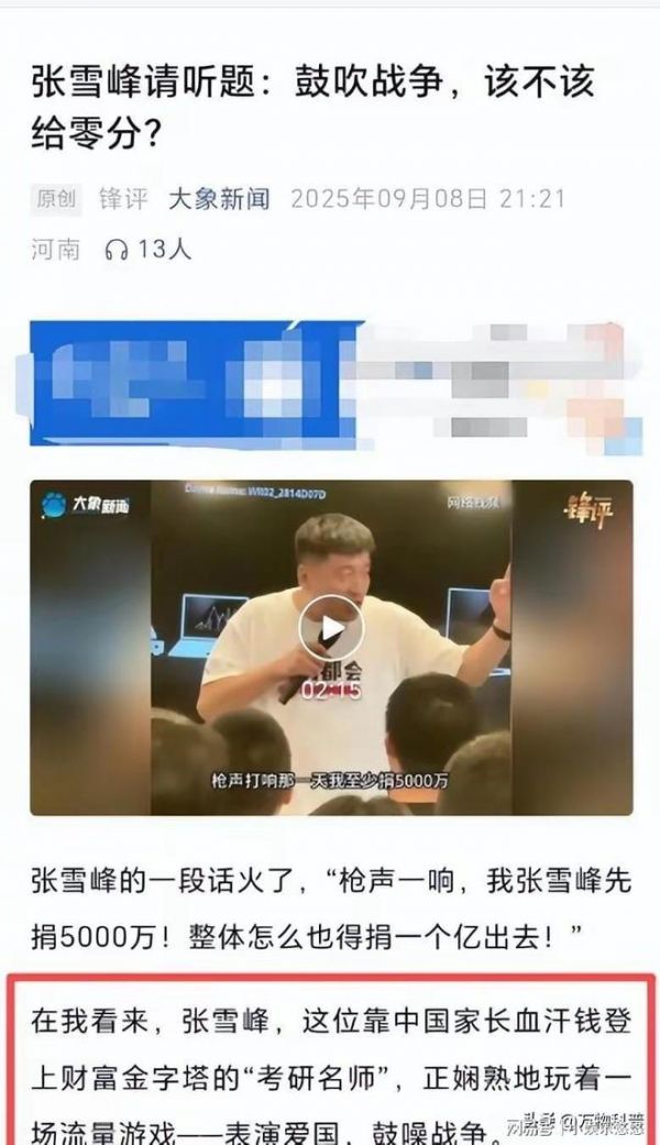 原本张雪峰是想蹭波热度,发动态自夸“为了看开幕式,连伍佰演唱会都没去”。