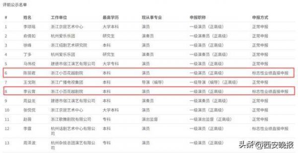 12月1日,2025年度浙江省文化广电和旅游厅艺术系列高级(艺术一级)专业技术职务任职资格评审计划评前公示发布,公示时间为5个工作日。记者看到,演员陈丽君和李云霄申报职称一级演员(正高级),申报方式是“标志性业绩直接申报”。