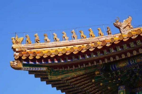 仔细看宫殿的屋脊,总有一排小动物雕像排队站岗,它们叫蹲兽。可别小看它们,它们最初是固定瓦片的钉帽,后来被赋予了守护平安、辟火镇邪的神奇寓意。