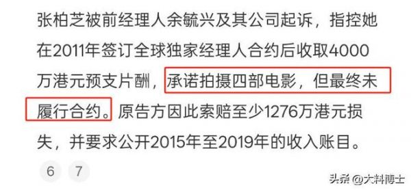 余毓兴方称,在张柏芝因艳照门名誉受损后,他在临危之际逆势与张柏芝签约,成为彼时张柏芝唯一的经纪人,余毓兴先后预支了4276万片酬给张柏芝,而后张柏芝却未按照合约配合完成电影拍摄工作。