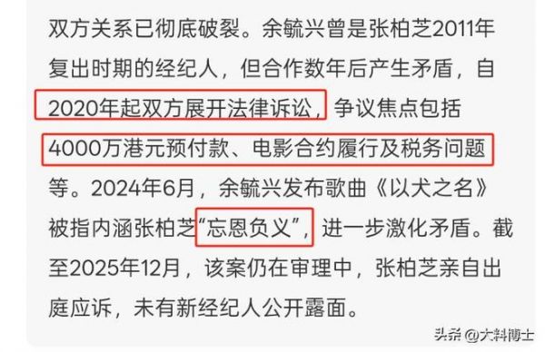 其实,此案已经是陈年老案了,从2020年起,余毓兴便对张柏芝提起了诉讼。