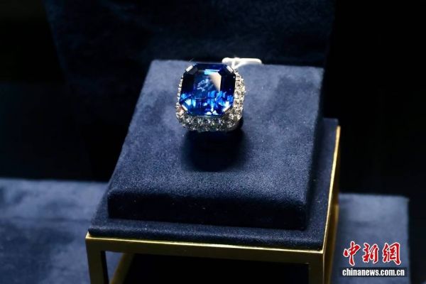 12月5日,保利拍卖二十周年秋季庆典拍卖会第一阶段预展在北京新保利大厦开幕,展出中国古董珍玩、现当代艺术、珠宝钟表共3大门类,逾千件拍品。图为大克拉蓝宝石配钻石戒指。中新社记者 易海菲 摄