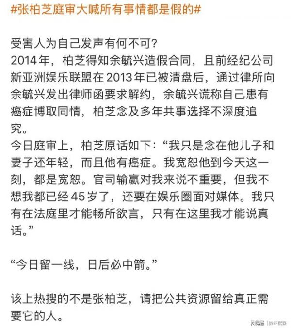 而“张柏芝在庭审大喊所有事情都是假的”,张柏芝方表示受害人为自己发声没什么不可以的。