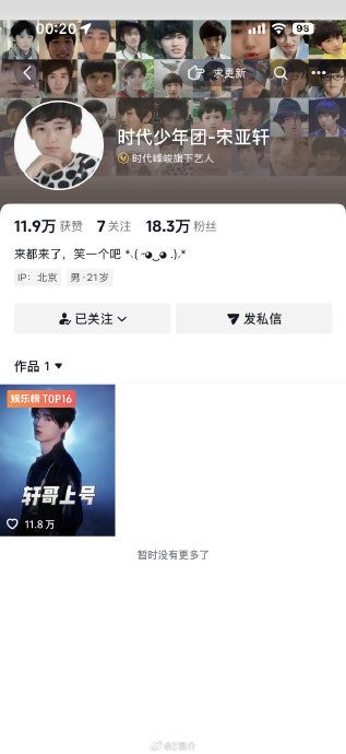 #王牌对王牌[超话]# 【#宋亚轩第一条抖音#】轩哥抖音首秀来了!王牌家族@时代少年团-宋亚轩 带着他画风清奇的抽象头像和背景上线啦doge
