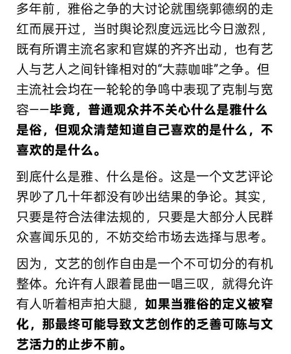 约谈也好,修改也罢,都是建立在默认郭德纲相声作品低俗、抹黑国家院团的基础上,这样的结果和西城文旅事后的态度形成了鲜明对比!