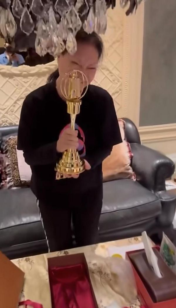 小S把金钟奖奖杯送给S妈,S妈拿到奖杯时双眼含泪,她为拥有一位这么优秀的女儿无比骄傲。