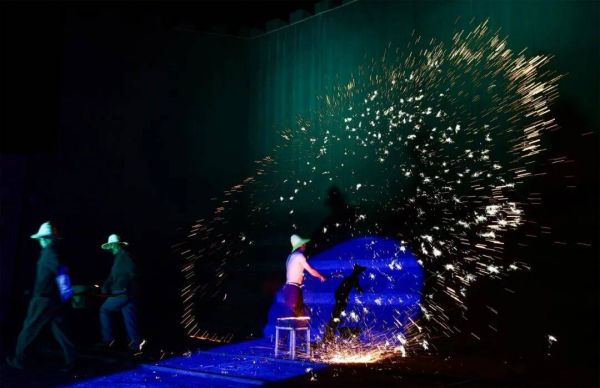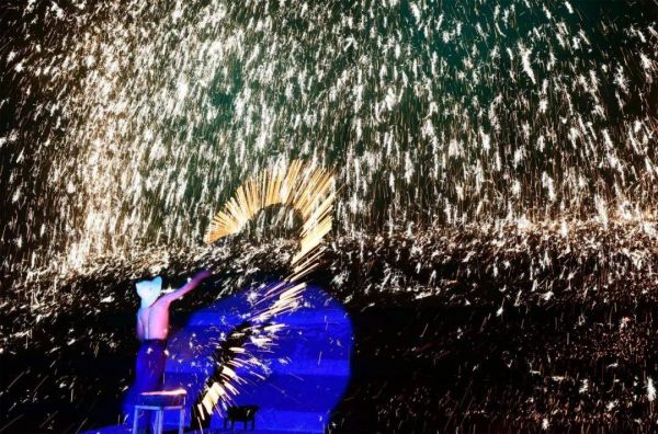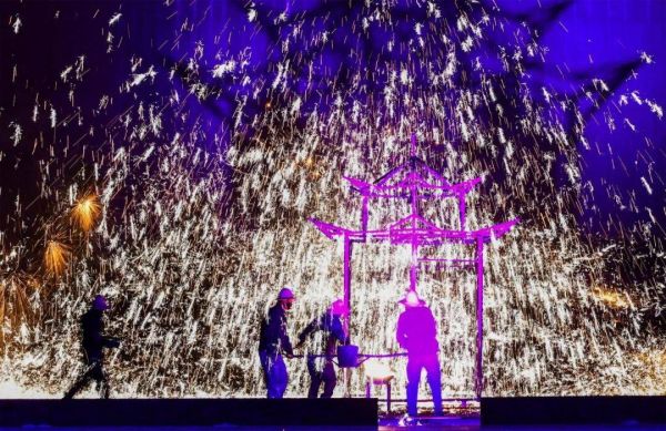 正月里闹新春县城巡回表演千年绝技,打铁花神秘惊险绽放夜空