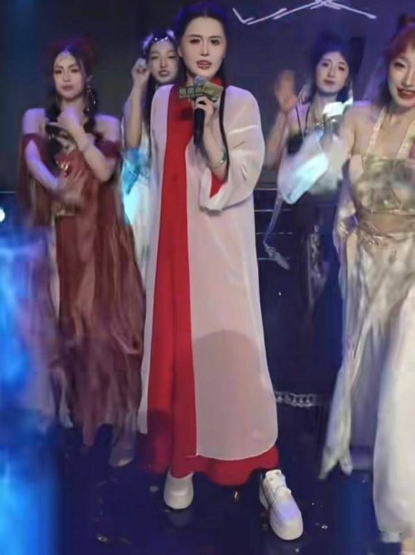 球球为了配合新歌的主题,还专门定制了一套新衣服,都是老家特色的花纹图案,太喜庆了。她一出场就感觉像开了长腿特效,175的个头比身后两个男士还高一些,天生的身高优势太明显了,再加上球球又特别瘦,皮肤也白皙,外形条件还是相当不错的,生了宝宝以后,身材一点没走样。