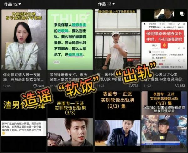 据悉,近期某短视频平台出现许多谣言抹黑保剑锋的影片,称男方“吃软饭”、“出轨”等。