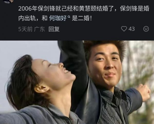 据网友爆料,保剑锋早在2006年就与黄慧颐结婚了,保剑锋曾在“婚姻”中出轨,和现任妻子何珈好是二婚。