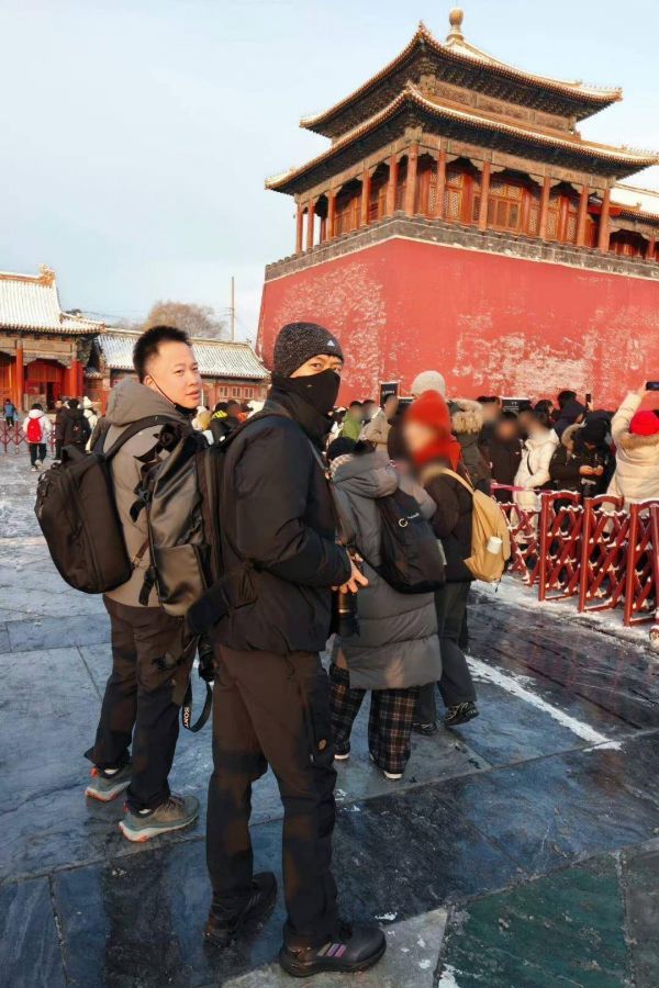 当日上午9时许,李现身着黑色冲锋衣、头戴毛线帽,背负专业摄影包出现在太和殿附近。尽管刻意压低帽檐,但其185cm的身形和标志性设备仍被眼尖游客捕捉。有偶遇者描述,他专注拍摄积雪覆盖的琉璃瓦与红墙的明暗对比,甚至蹲地捕捉雪粒落在石阶的瞬间,动作娴熟如专业摄影师。这一幕与故宫雪景的古典美学形成奇妙呼应——朱墙映雪的视觉张力,既是中国传统水墨意境的延续,也是当代影像艺术的天然画布。