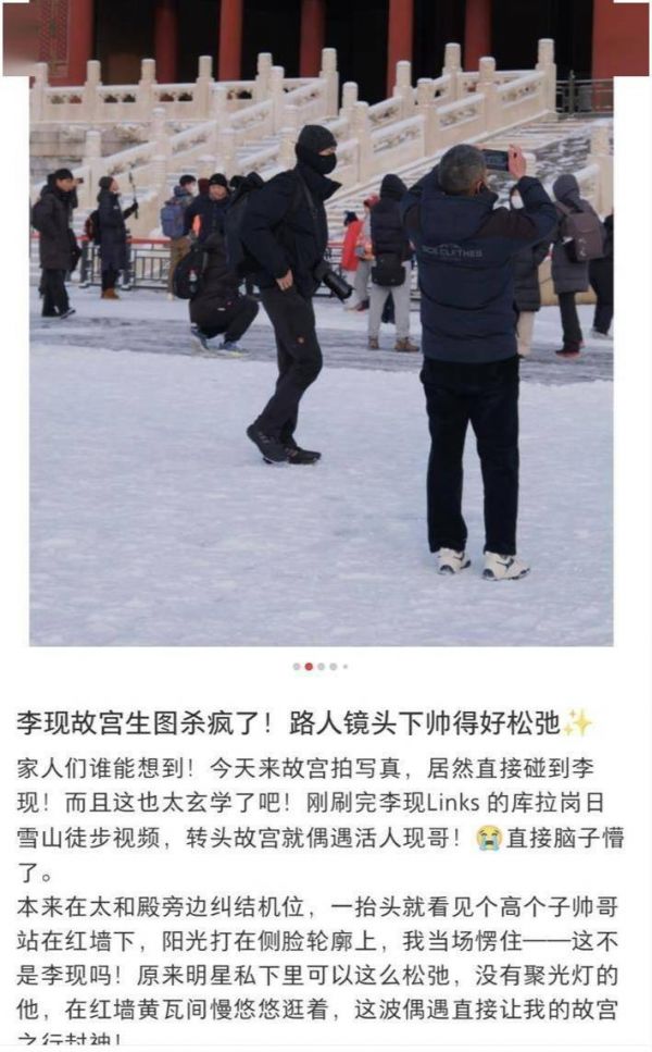 当李现的相机快门声与故宫的落雪声交织,这场偶遇早已超越娱乐八卦的范畴。它折射出当代公众人物与艺术表达的新可能:褪去明星光环,以探索者的姿态融入自然与人文景观。正如网友所言:“期待现哥的故宫雪景大片,更期待他带我们看见更多世界的角落。”