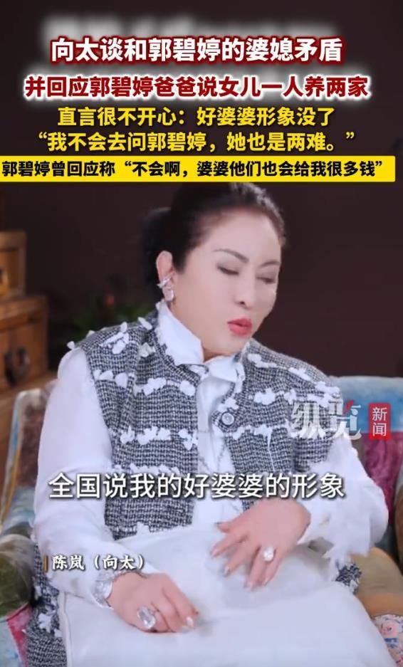 一则关于“郭碧婷一人赚钱养两个家”的网络传言,最终演变成一场牵扯出婆媳关系、家庭边界与公众形象的微妙回应。向太陈岚在最新发布的视频中,首次正面谈及因亲家公一句话而受损的“全民好婆婆”形象,直言“我当然是不开心”,“好婆婆”的形象受损”,但强调不会去质问儿媳郭碧婷及其父亲,只因“不想为难儿媳”。这番看似大度却信息量十足的剖白,将豪门家庭内部那本不易为外人道的“经济账”,推至台前。