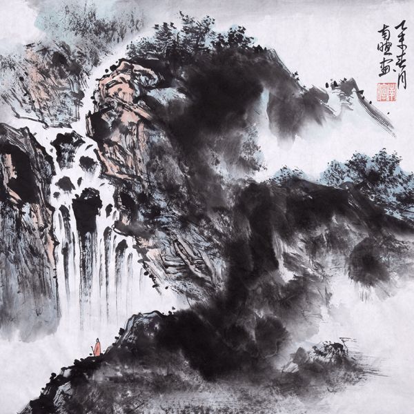 山水创作中,他走得更“硬”。不靠繁复皴法堆积画面,不刻意营造诗意场景,而是通过墨色的厚薄、结构的松紧来建立空间。山是山,不是背景;墨是墨,不是装饰。这种处理方式,在当下装饰性山水盛行的环境里,显得并不讨巧,却异常真实。