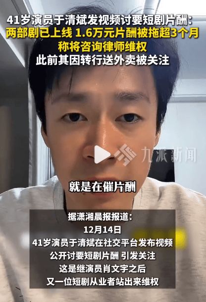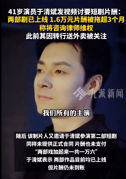 短剧演员于清斌讨薪:片酬拖超3个月,涉事作品已上线
