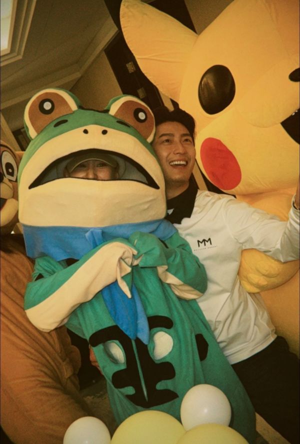 这场生日派对藏着双向奔赴的用心与浪漫。此前窦骁刚在帆船赛中成功卫冕冠军,何超莲全程到场见证荣耀,举着手机记录丈夫高光时刻,尽显对伴侣事业的全力支持。生日现场,何超莲更放下豪门千金的优雅身段,身着可爱青蛙卡通服化身惊喜使者,摘下头套的瞬间,窦骁难掩欣喜将其拥入怀中,这一幕自然流露的亲昵,成为全场最戳人的甜蜜瞬间。派对上,窦骁身着印有自己帆船队名“骁遥”的服装,依旧带着赛场的意气风发,何超莲则切换卡通装与休闲装两种造型,看向窦骁的眼神始终满含星光,身旁好友举杯祝福,氛围温馨又热闹。