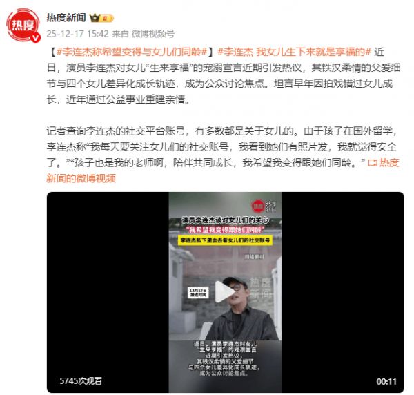 近期,演员李连杰一句关于女儿“生来享福”的宠溺表态,在网络上掀起了讨论的热潮,他作为硬汉却流露出来的柔软父爱细节,还有四个女儿各不相同的成长路径,都成了大家关注的重点。李连杰也坦言,早些年因为拍戏的缘故,错过了陪伴女儿成长的时光,近几年,他正借着参与公益事业的契机,重新拉近和女儿们的距离,修复亲情。