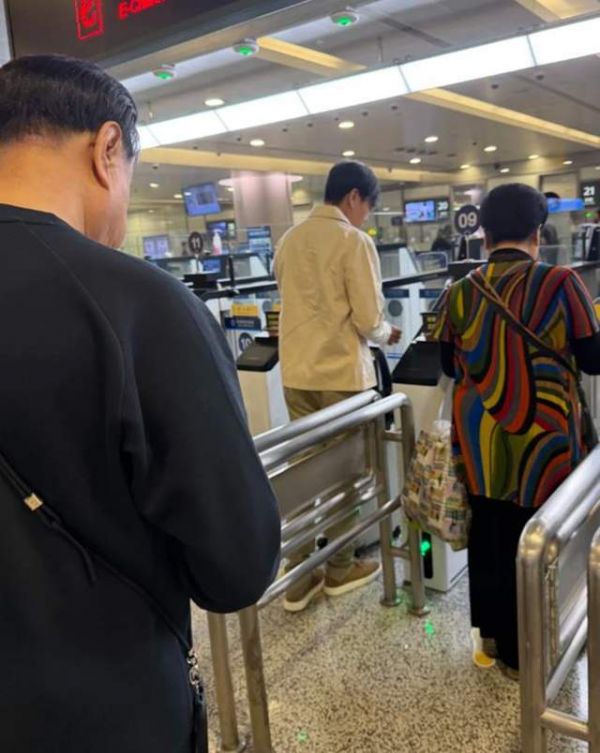 凌晨五点就到机场的伊能静一家,机场人不是很多,一家五口顺利办理登机手续。偶遇照中,伊能静披散一头黑色长发,身着藏蓝卫衣搭配浅色牛仔裤,拎着行李箱的她站在女儿身后耐心等待。