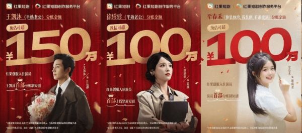 红果今年对行业的重大影响之二,是分账机制。2025年8月,红果短剧升级剧本合作政策,评级最高的保底稿费从12万元上升至20万元,分成从20%升至40%。9月4日,红果推出了“演员合作计划”,瞄准了短剧产业链的演员经纪业务。在红果创作者大会上,红果自制剧升级为短剧创作服务平台,开放编剧入驻。11月20日首次公开数据显示,王凯沐、徐轸轸、至春禾三位演员获得了百万+分账。2025年10月平台总分账突破7300万。