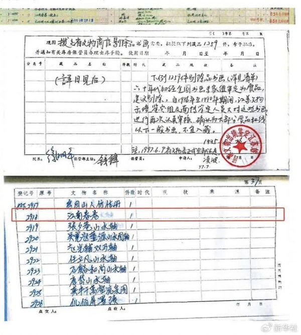1997年5月8日,被专家认定为赝品的《江南春》图卷拨交给原江苏省文物总店。