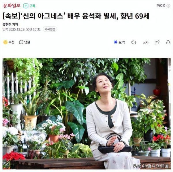 韩国话剧界的代表演员尹石花于近日去世,享年69岁。