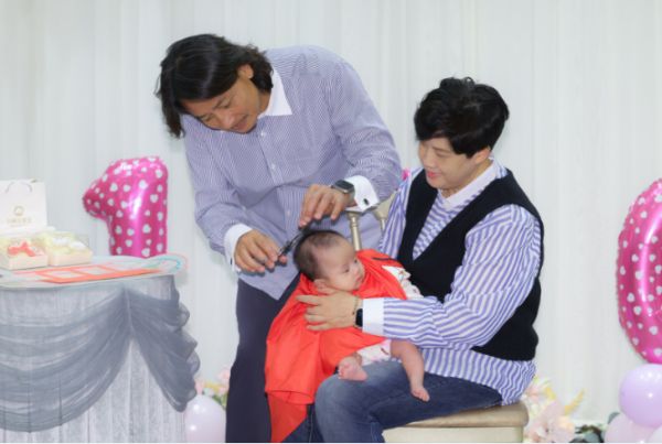 宴会上特别为长女“小黄妃”举行胎毛笔开笔仪式,并为小女儿“小贵妃”制作胎毛笔及姊妹手足情深印,寓意姐妹情深、传承家训。这场别具意义的仪式让在场宾客共同见证了这个家庭的幸福时刻。