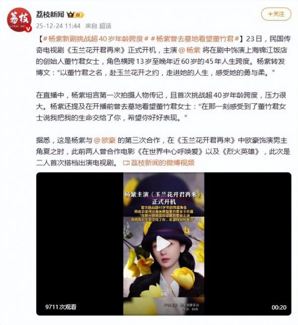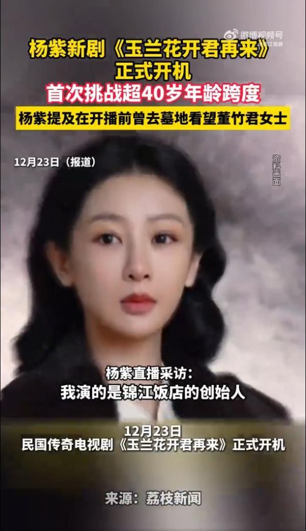12月23日,民国传奇剧《玉兰花开君再来》官宣开机,主演杨紫的一句“以董竹君之名,赴玉兰花开之约”,瞬间点燃了全网期待。但真正让话题炸开的,是她为这部戏做的一件“特别准备”——开拍前,她专门去了墓地看望董竹君女士本人。