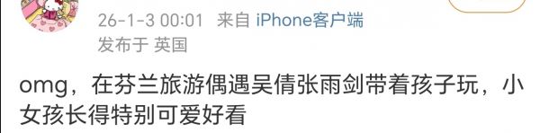 3. 网友芬兰偶遇吴倩张雨剑带孩子 小女孩颜值出众