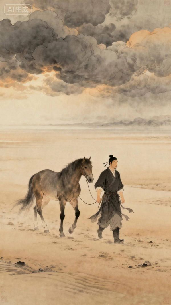 一个“迷”字,写尽了沙漠行旅的困境。这不仅是方向上的迷失,更是心理上的迷惘。在这片单调而浩瀚的沙海里,天地间仿佛只剩下孤独的旅人。
