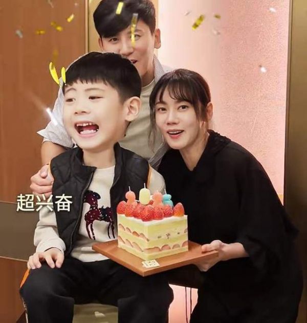视频中秋瓷炫于晓光7岁儿子也有出镜,只见一家三口吃的差不多的时候,秋瓷炫端上水果蛋糕庆祝新一年的到来。