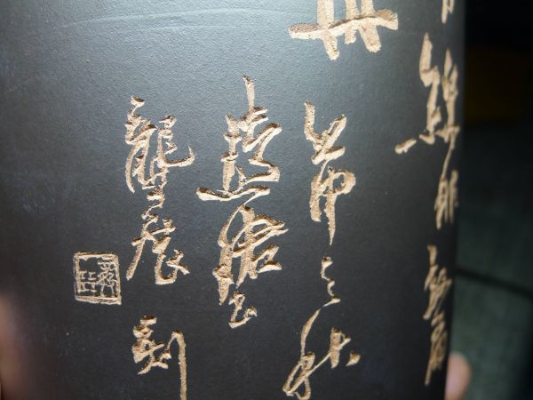 龚展由刻石入手,转刻紫砂,又得到大名鼎鼎雕刻大师沈老的点拨。龚展的紫砂作品把刻砚的金石味融入紫砂,既老辣古朴又维妙趣味,特点明显,一眼辨识,自成一派的特色, 赢得了刻壶,玩壶,爱壶,藏壶人士的好评