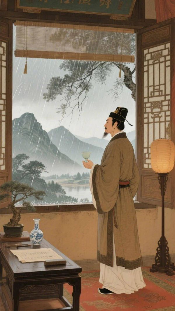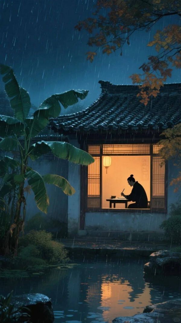 张嵲的这场夜雨,是一场纯粹的听觉盛宴,也是一场情感的深度体验。从模糊的“夜雨声”,到清晰的“空阶滴沥”,再到刻意追寻的“芭蕉叶上”声,雨声越来越具体,诗人的愁绪也越来越浓重。这雨,是孤独的催化剂,是愁绪的放大器,它将诗人天涯飘零的悲苦,渲染得凄婉动人,令人不忍卒读。