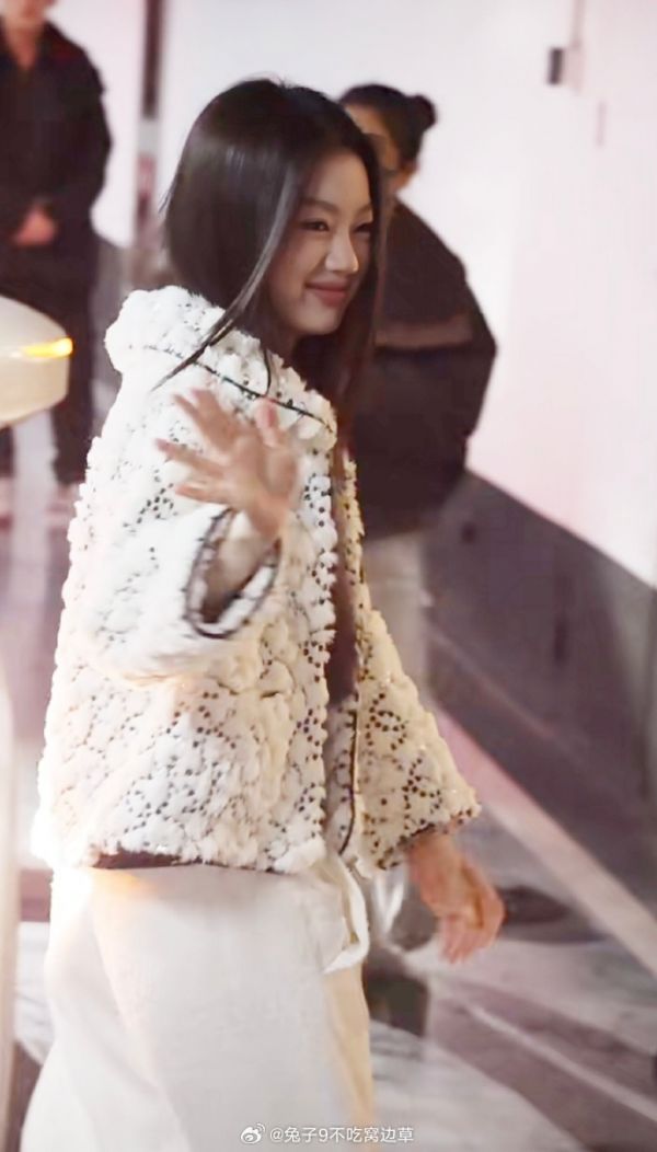 #单依纯香奈儿快闪店上班##单依纯香奈儿线下活动路透#单依纯穿全白香奈儿套装现身路透,酷 girl 与温柔优雅并存,还亲切和粉丝挥手互动