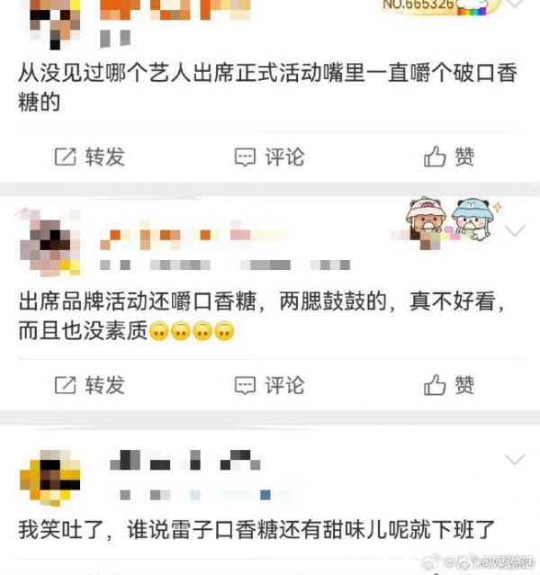 头一次见艺人在官方活动上嚼口香糖,吊儿郎当的样子好随意