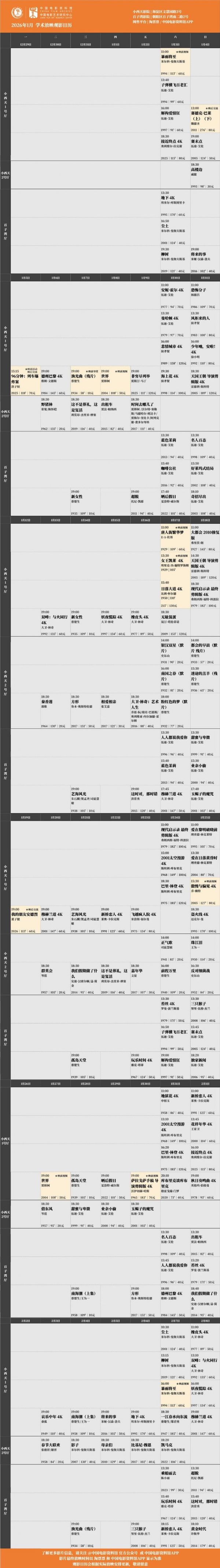 所有场次均可在淘票票、中国电影资料馆APP购票,具体排片见末图,祝大家观影愉快。❤️