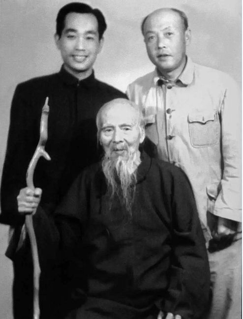 1953年,许麟庐(左)与齐白石(中)、李苦禅(右)合影。