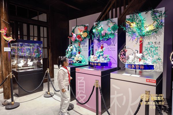 瑞兽是中国传统文化里的祥瑞象征,寄托着祈福辟邪、国泰民安的美好愿望。马年新春,这些瑞兽化作非遗灯彩降临古镇,成了街头巷尾的视觉焦点。此次特展循着“瑞兽贺新年、花鸟传美好、传承与创新”的脉络,集中展示国家级非物质文化遗产“上海灯彩”的精湛技艺,完整展现非遗灯彩从指尖匠心到文化滋养的全过程。
