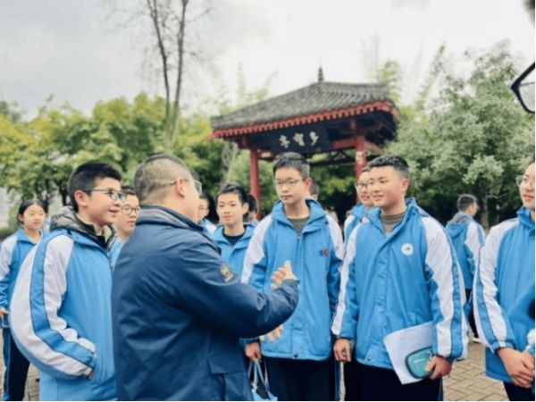 陆斌为学生们讲解(图源:成都市双庆中学)