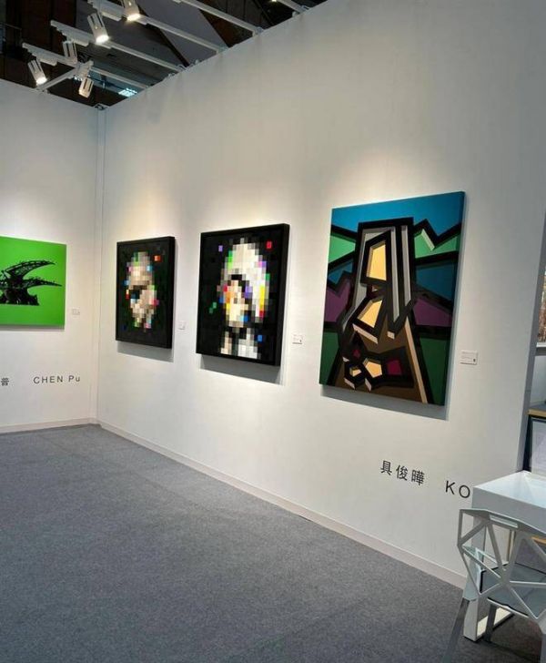具俊晔开画展,马赛克风格的光头和大S画像