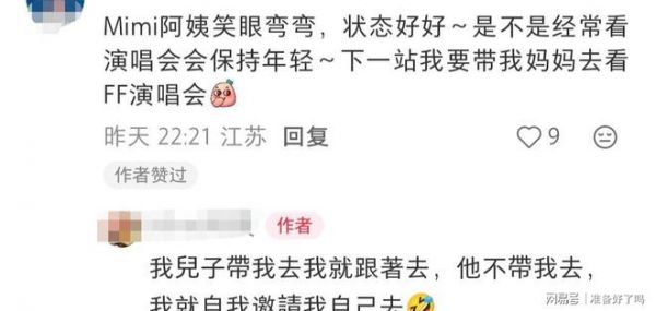 在评论区里,她与网友互动。其中有一位网友夸她笑眼弯弯,状态好好,好奇她是不是经常看演唱会保持年轻?她说,儿子带她去就跟着去,儿子不带就自己邀请自己去。