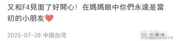 梳理发现,去年7月,F4在五月天北京演唱会上合体,她也去看了,还在社交账号上分享了动态。当时,她说,在她的眼中他们四个永远是当初的小朋友。