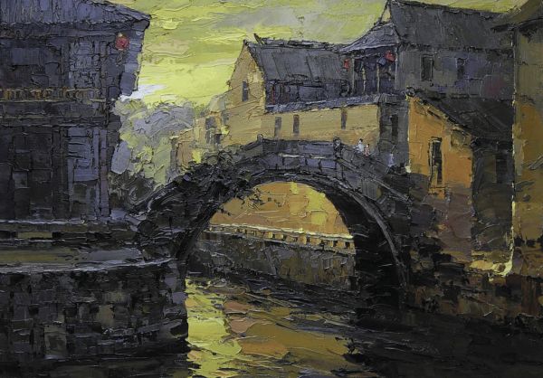 吕文扬绘画大师深耕古镇水乡桥影题材写意创作