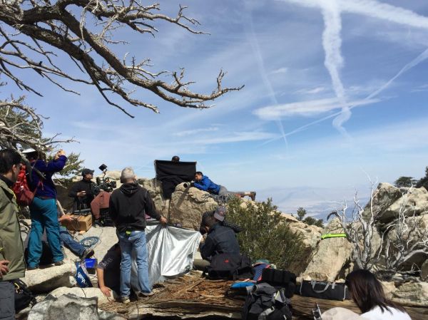 2015年,吉飞龙受全球市值最高银行美国富国银行邀请,以国家地理频道摄影师的形象主演其年度形象大片《父亲》。图为该片在美国加利福尼亚州的拍摄现场花絮
