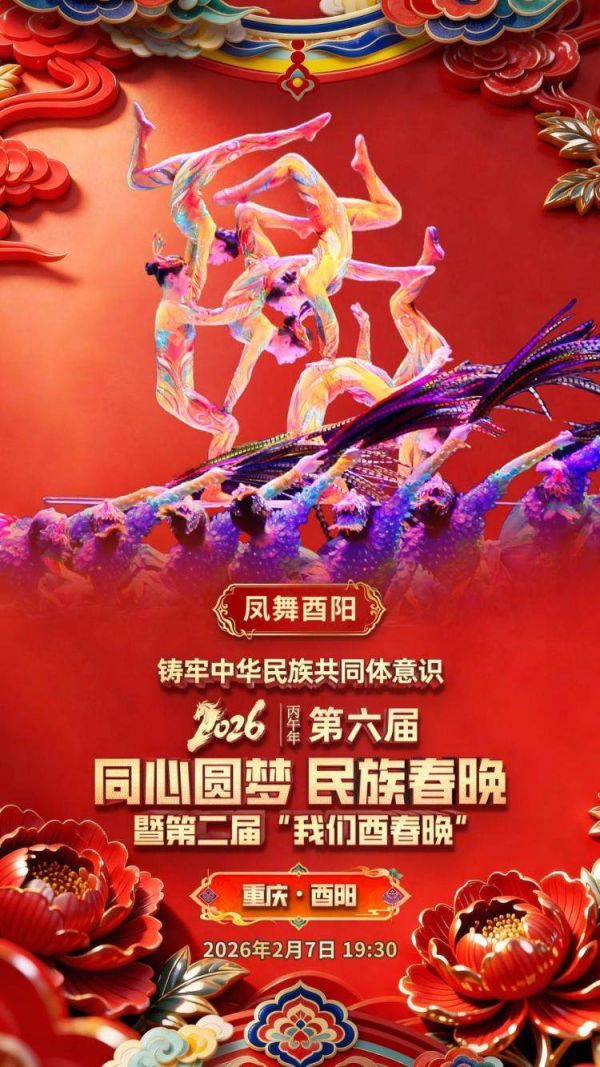 继2025年第五届“同心圆梦 民族春晚”落地酉阳引发全网超1亿人次曝光后,这场全国性知名文化品牌盛宴再度与酉阳携手——第六届“同心圆梦 民族春晚”暨第二届“我们酉春晚”将于2月7日19:30在重庆酉阳桃花源梦幻大舞台开演。活动由中国民族贸易促进会主办,目前已进入彩排阶段,以豪华主创、定制节目、沉浸舞美三大亮点,为全国观众献上兼具文化深度与视听震撼的新春盛宴。