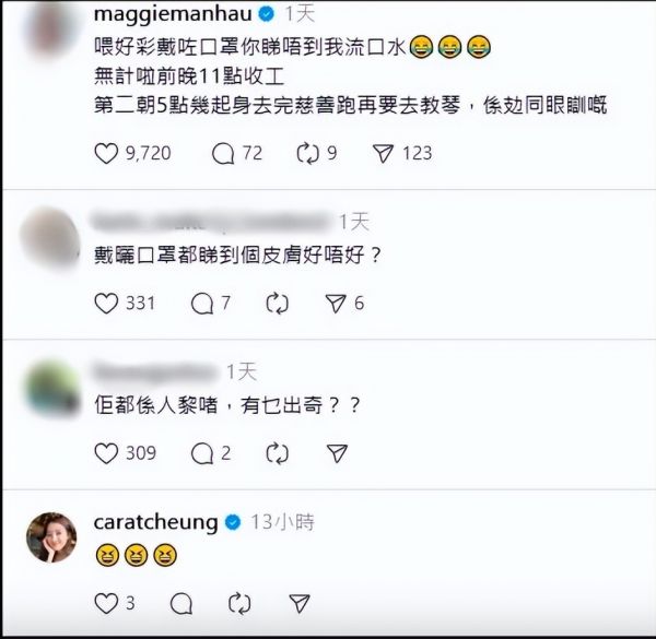 这张照片曝光后,很快就传到了梁敏巧本人的耳朵里。她不仅大方在帖文下认领了自己,还幽默地自嘲:“喂好彩戴了口罩你睇唔到我流口水。”