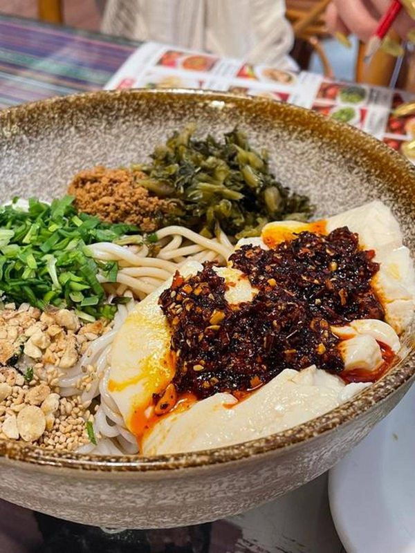 昆明豆花米线的魅力在于其口感的层次感和风味的丰富性。首先,豆花的软糯与米线的爽滑形成鲜明对比,入口时豆花的细腻仿佛云朵般融化在舌尖,而米线的弹性则带来咀嚼的乐趣。其次,酱料是昆明豆花米线的灵魂,通常由辣椒油、花生碎、葱花、酱油和特制肉酱等多种配料调制而成,这些配料的比例和搭配方式因店铺而异,造就了每家店独有的风味。有些店家还会加入酸菜或腌萝卜,增添一丝酸爽,让整碗米线更加开胃。对于不喜辣的人来说,昆明豆花米线也能通过调整辣度来适应口味,体现了其包容性。
