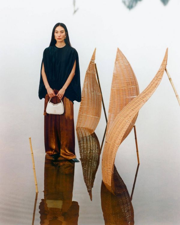 如果说“根脉”是故事的底色,那么“生影”便是文化如何于当代焕发生机。大片中,模特的角色并非在装置前摆出疏离的姿态,而是以静谧而充满力量的身体语言与之互动,模特身上的包包服饰,属于现代审美的表现,与周遭的传统材料装置同频共振,诠释了“传统与当代”并非二元对立,而是一种共生共长。半坡让传统不再沉重,成为可以融入呼吸、成为生活背景音的当代美学。这正体现了品牌“文化之根,包容之美”的核心理念——美,因根深而叶茂,因包容而广阔。