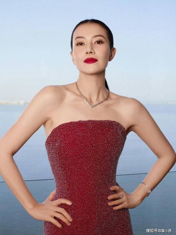 如果说金色亮片裙是气场全开的女王,那这套酒红色抹胸紧身裙就是温柔妩媚的女神,将高圆圆的温婉气质展现得淋漓尽致。酒红色本身就是极具氛围感的颜色,浓郁又高级,不挑肤色,还能衬得皮肤白皙透亮,自带一种复古又温柔的韵味。抹胸的设计大胆又精致,完美露出肩颈和锁骨线条,将上半身的优势展现得恰到好处,抹胸边缘的细腻剪裁,贴合身形却不紧绷,避免了走光的尴尬,同时也修饰了胸部线条。