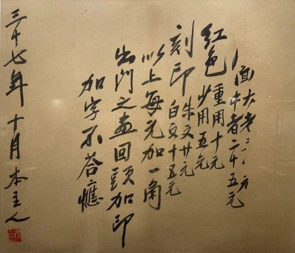 4,绝止减画价,绝止吃饭馆,绝止照像。吾年八十,尺纸六元,每元加二角。