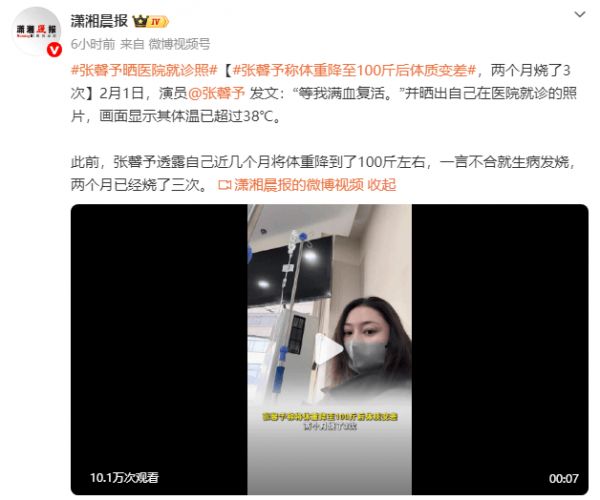 据悉,张馨予此前曾透露自己近期通过努力将体重降至100斤左右,但随之体质明显下降,变得容易生病。她坦言在近两个月内已反复发烧三次,此次公开就医情况也让不少粉丝担忧其健康状况。